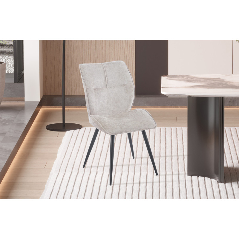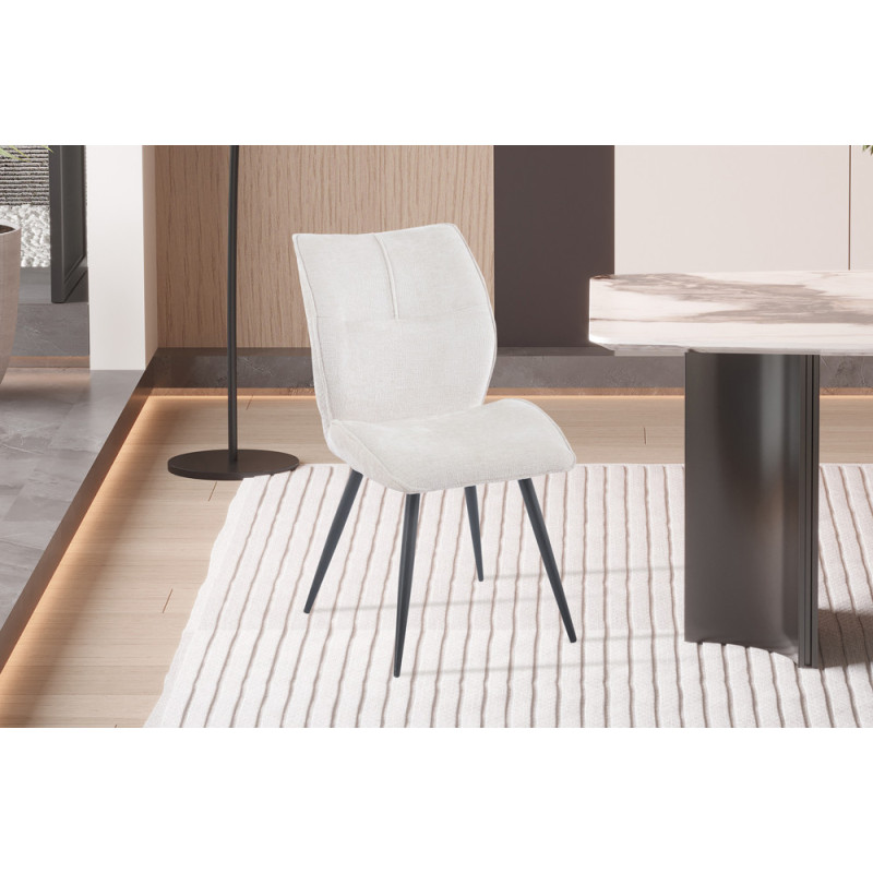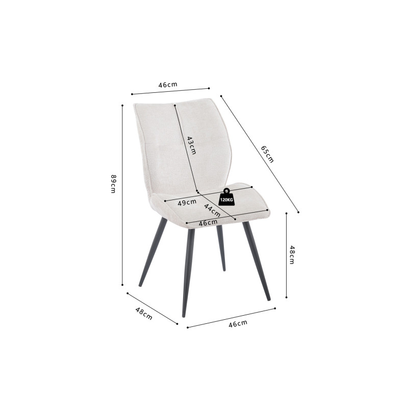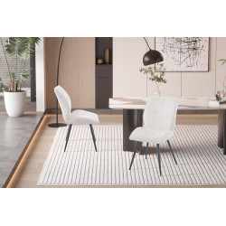 Nettoyez régulièrement votre chaise avec un chiffon doux et humidifié d'eau savonneuse pour enlever la poussière et les taches. Évitez d'utiliser des nettoyants abrasifs ou chimiques qui pourraient endommager la surface. Si votre chaise est taché, utilisez un nettoyant doux spécialement conçu. N'utilisez pas d'eau de Javel ou d'autres produits de blanchiment puissants, car ils peuvent décolorer le matériau.