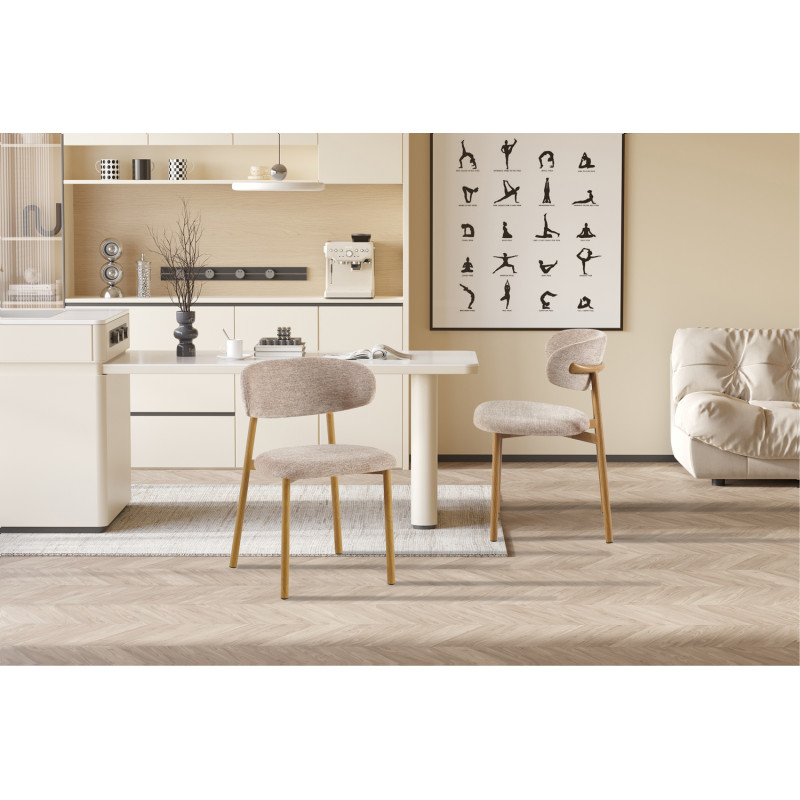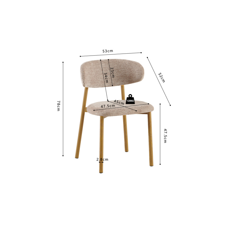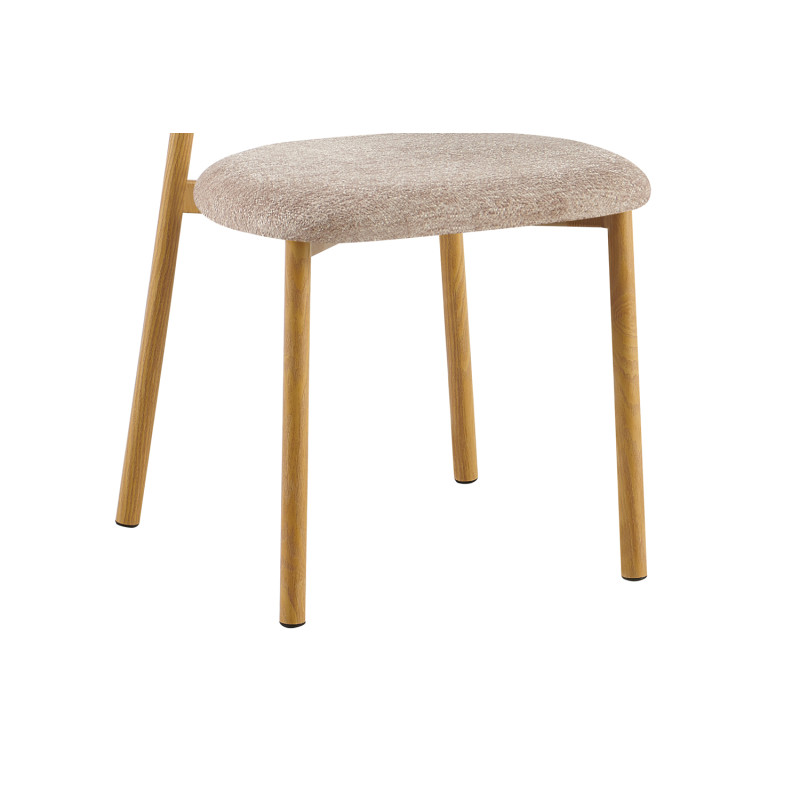La chaise Coco associe une structure solide à une esthétique chaleureuse et contemporaine. Son piètement est conçu en métal porteur, garantissant stabilité et robustesse à l’usage. Les pieds sont habillés d’un revêtement décoratif à motif veinage bois, qui apporte une touche naturelle tout en conservant la fiabilité d’une structure métallique.