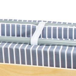 Le matelas, d’une épaisseur de 10 cm, est composé d’une mousse polyuréthane densité 24 kg/m³. Il est habillé d’un coutil intissé 100 % polypropylène à rayures, sobre et intemporel. La hauteur du sol au sommet du matelas est de 39 cm, facilitant l’accès et le lever.